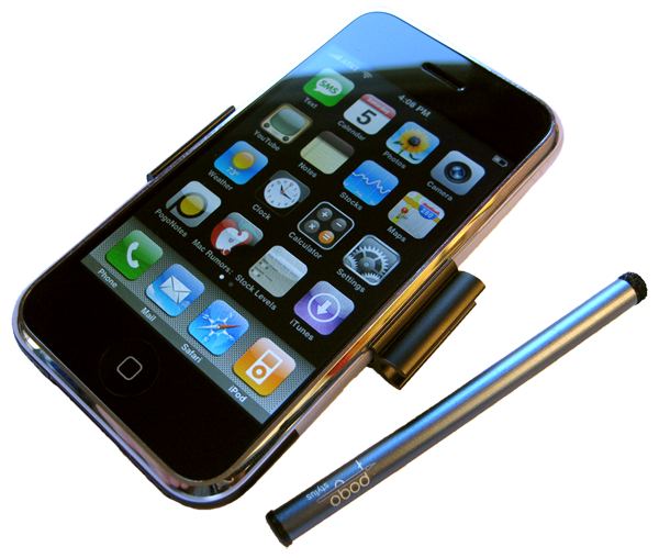 The folks at Ten One Design were nice enough to send me a Pogo Stylus to do some testing it as an adaptive tool for using the iPhone. The reason why you need a special stylus is that the iPhone only works with your finger. As Wikipedia eloquently states it, “Because the screen is a capacitive touchscreen, bare skin is required; a stylus or a normal glove prevents the necessary electrical conductivity.[34][35][36][37]”